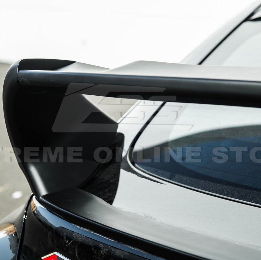 Constructed from high-quality ABS plastic, the EOS rear trunk wing delivers excellent durability, impact resistance, and long-term reliability. ABS is widely used in OEM and performance aero components due to its ability to withstand daily driving conditions, temperature changes, and environmental exposure. Finished in matte black, the spoiler offers a sleek, understated appearance straight out of the box and serves as a perfect base for paint or vinyl wrap customization.