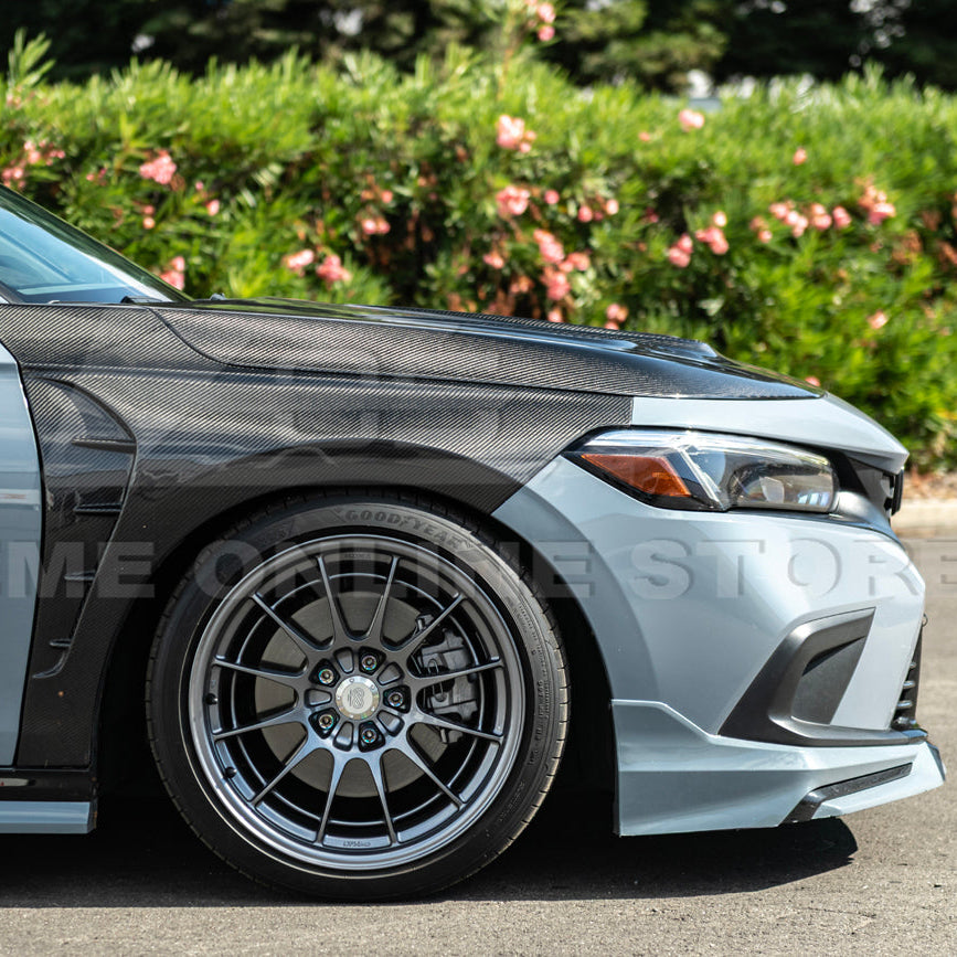 Enhance your 2022–Present Honda Civic with the JDM Varis Style Carbon Fiber Front Vented Bumper Hood, designed to deliver a bold and aggressive Type-R inspired aesthetic. Made from 3K Twill Weave Real Carbon Fiber, this lightweight yet durable hood perfectly balances performance and style. The JDM FL5 Type-R vented design promotes better airflow and heat extraction, giving your Civic a more dynamic and track-ready presence.