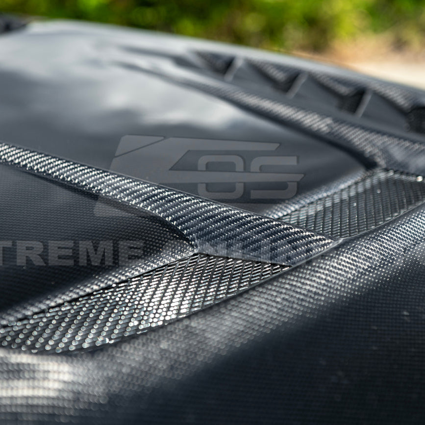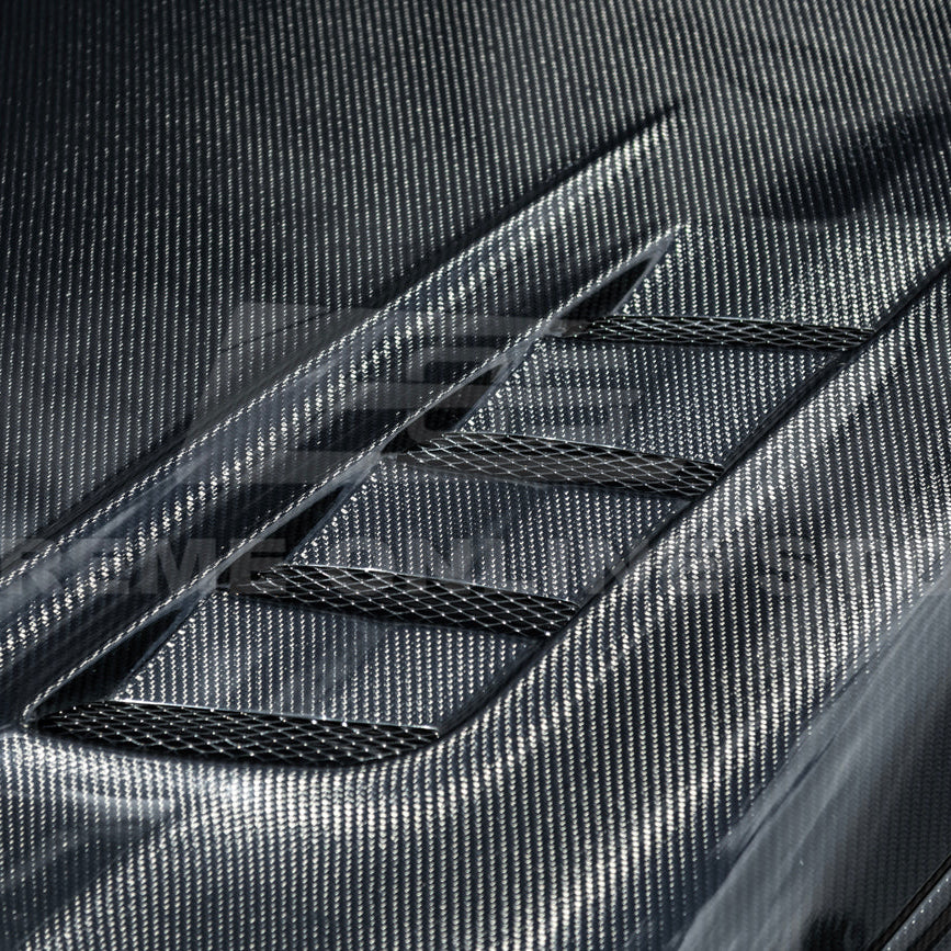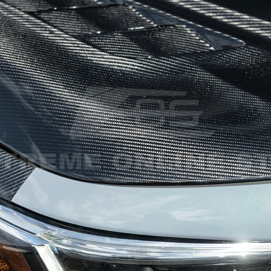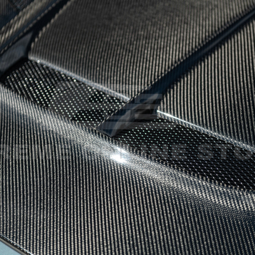 This carbon fiber hood features a direct bolt-on installation process, making it simple for both professionals and DIY enthusiasts. No drilling or modification is required, and it utilizes the factory mounting hardware for a clean and precise fit.