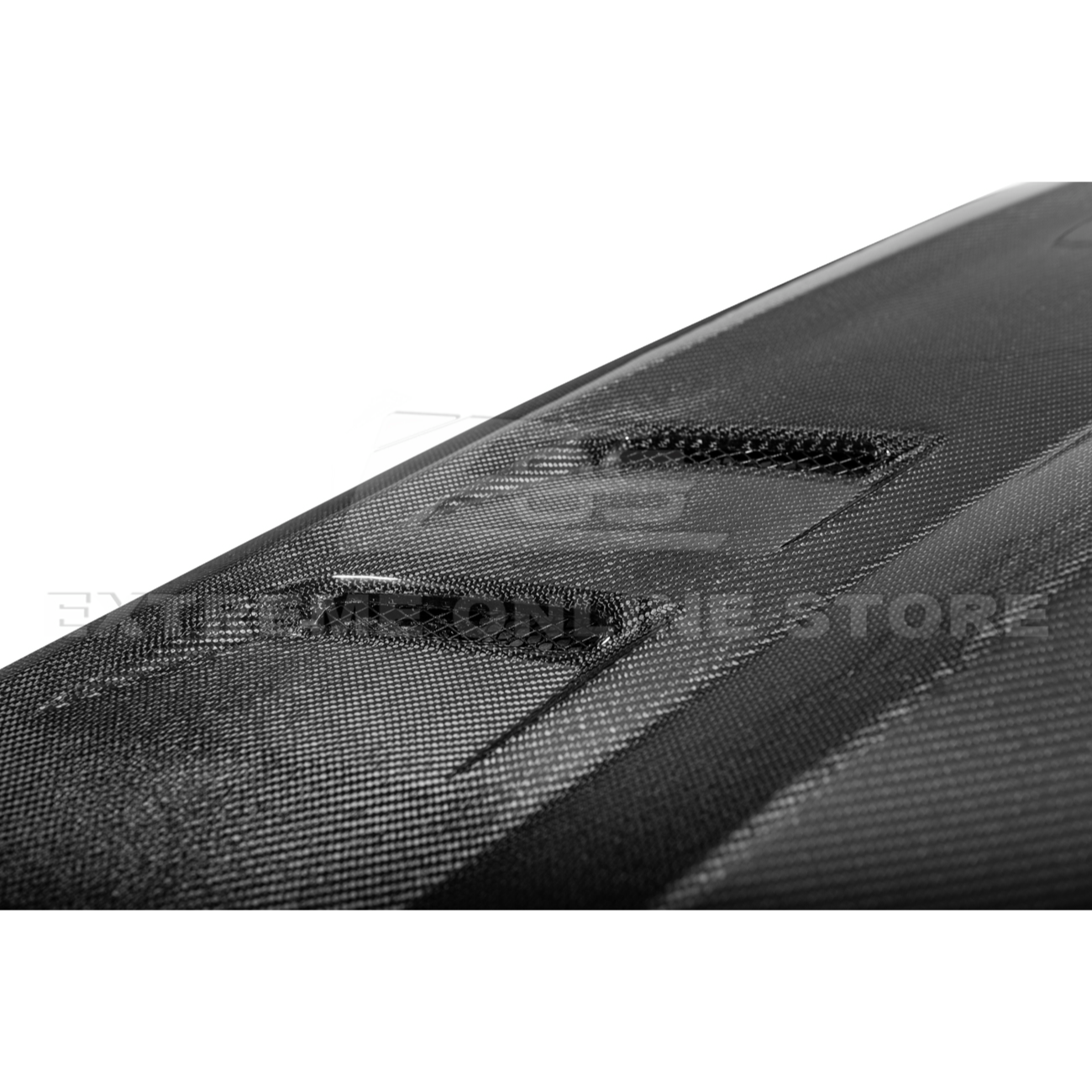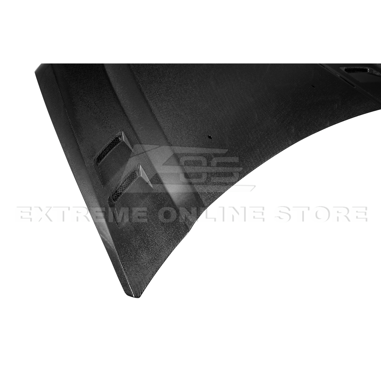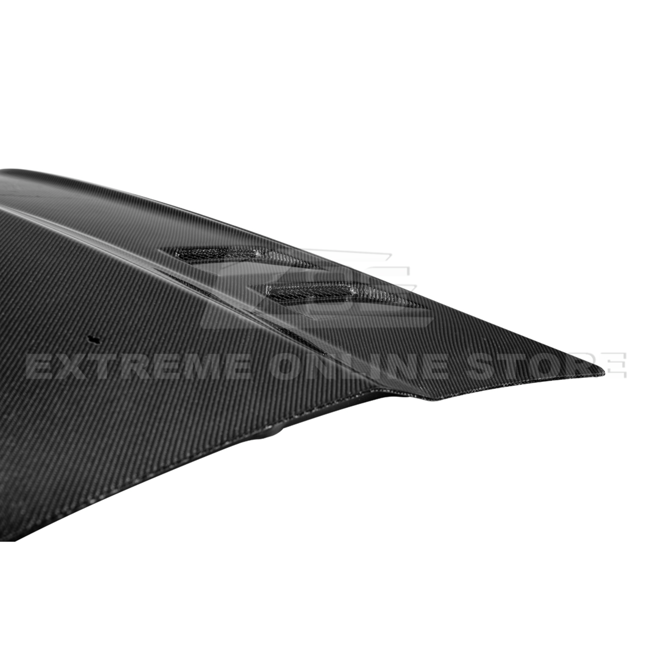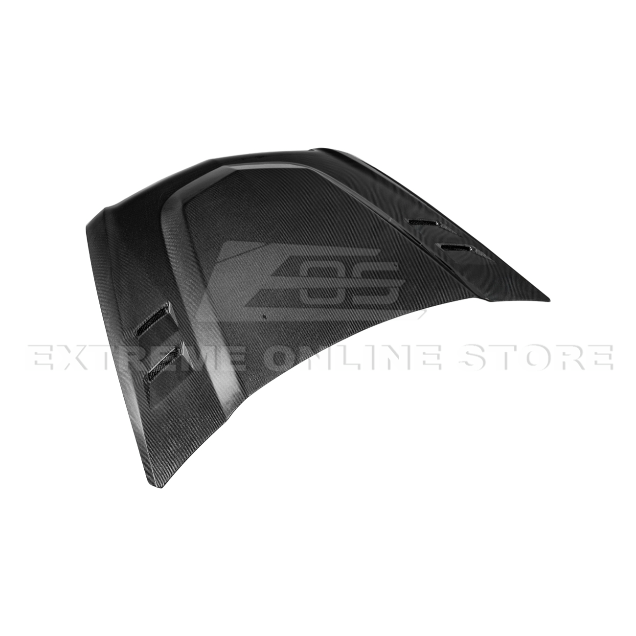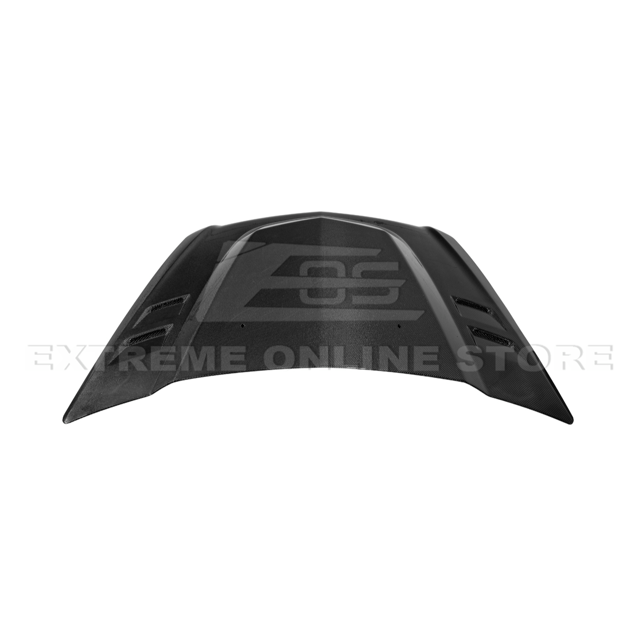 Integrated middle vent actively evacuates hot air from the engine bay, improving cooling efficiency and reducing heat soak for supercharged and performance-tuned applications. -