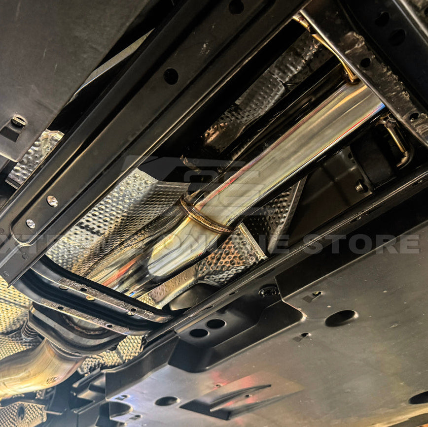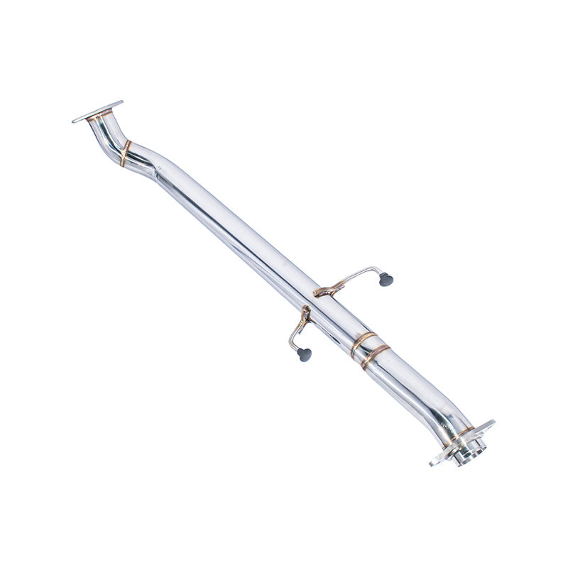 Constructed from high-quality T-304 stainless steel, this mid pipe features 3-inch mandrel-bent piping that maximizes exhaust flow and minimizes restriction compared to the factory unit. The 16-gauge stainless steel construction ensures long-term durability, resistance to corrosion, and consistent performance under spirited driving conditions. Finished in anodized silver, it delivers a clean, performance-inspired appearance underneath the vehicle. This non-resonated mid pipe is ideal for enthusiasts looking to enhance sound, response, and overall driving excitement while maintaining proper fitment and reliability.