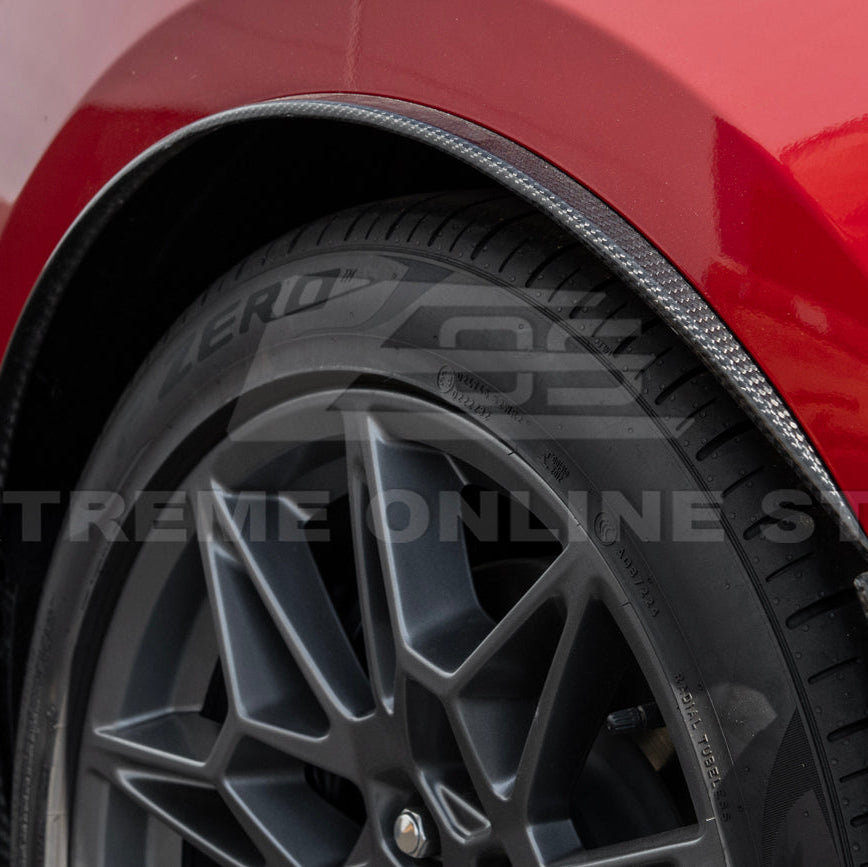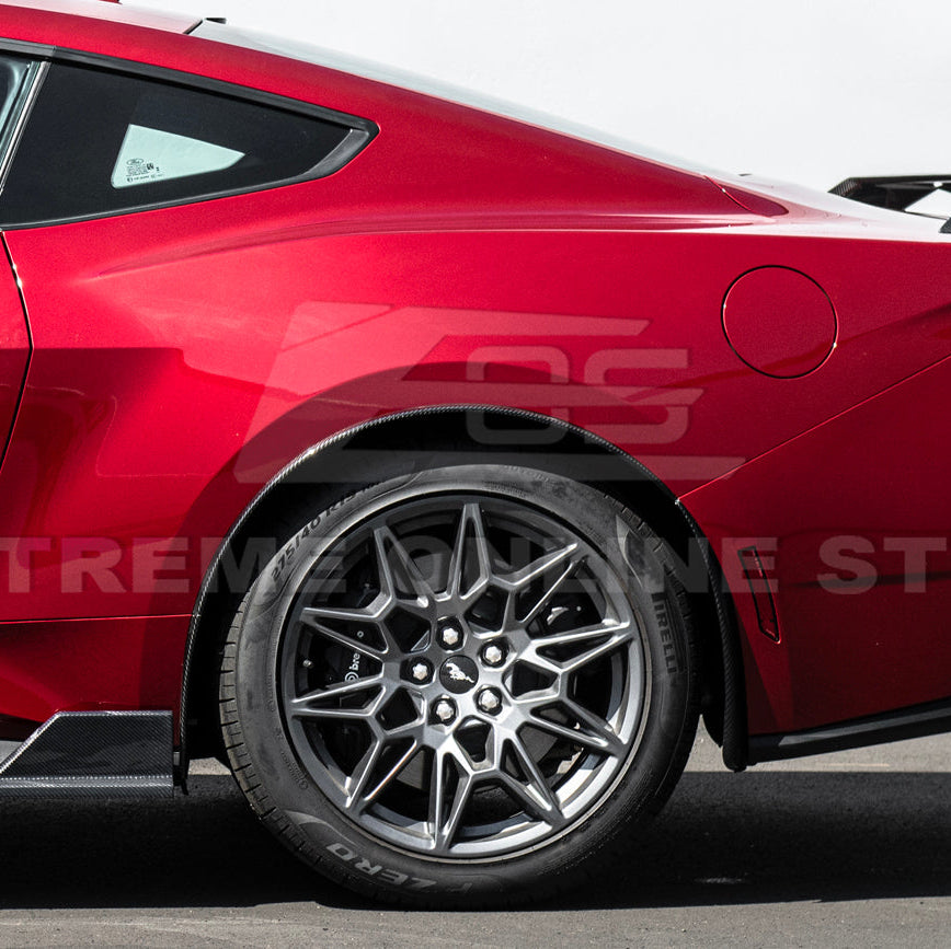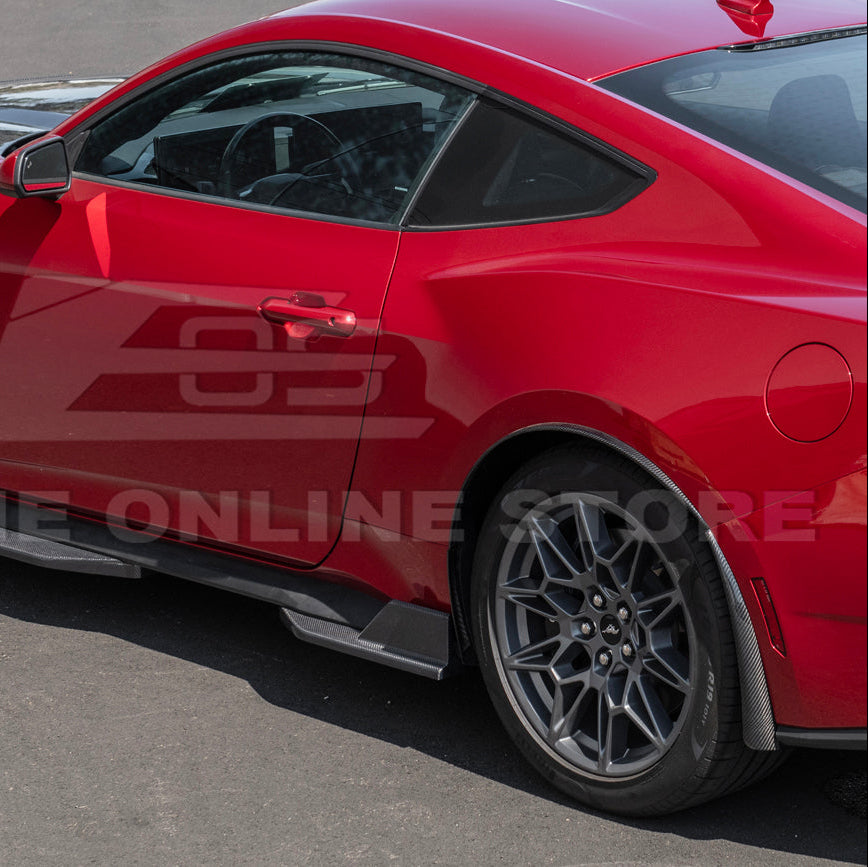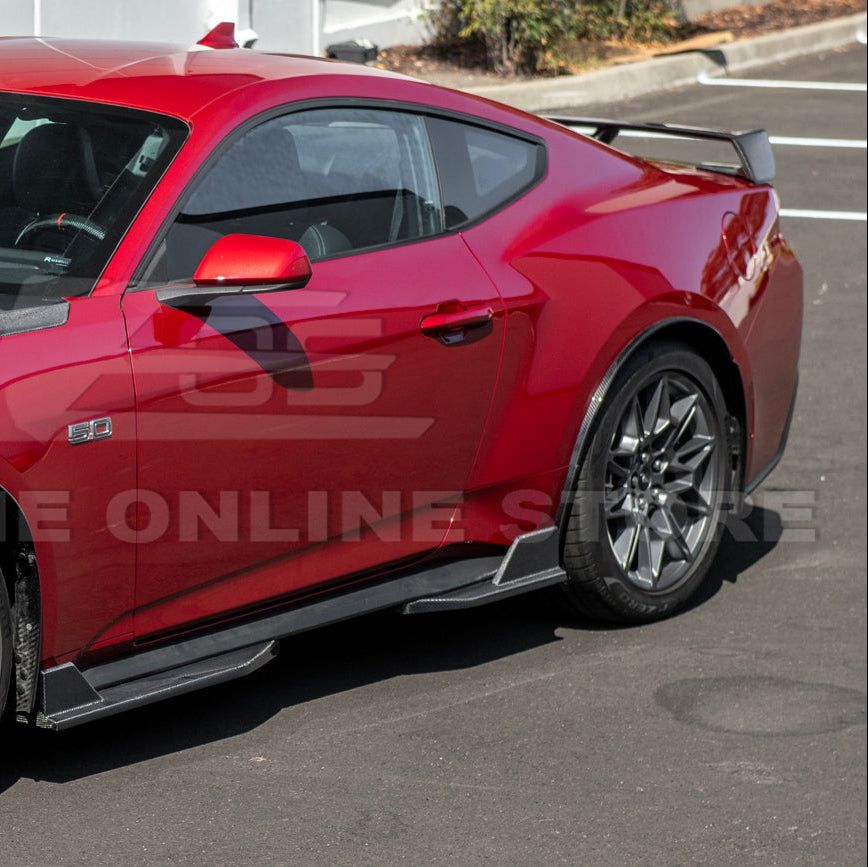 Available in Carbon Fiber or Glossy Black, this XL Extended Package blends performance styling with durability. The carbon fiber option is manufactured from dry pre-preg carbon fiber for lightweight strength and a premium woven finish, while the glossy black option uses high-quality ABS plastic for a sleek, factory-inspired look. Both finishes are precision-molded to follow the Mustang’s rear quarter contours for seamless integration.
