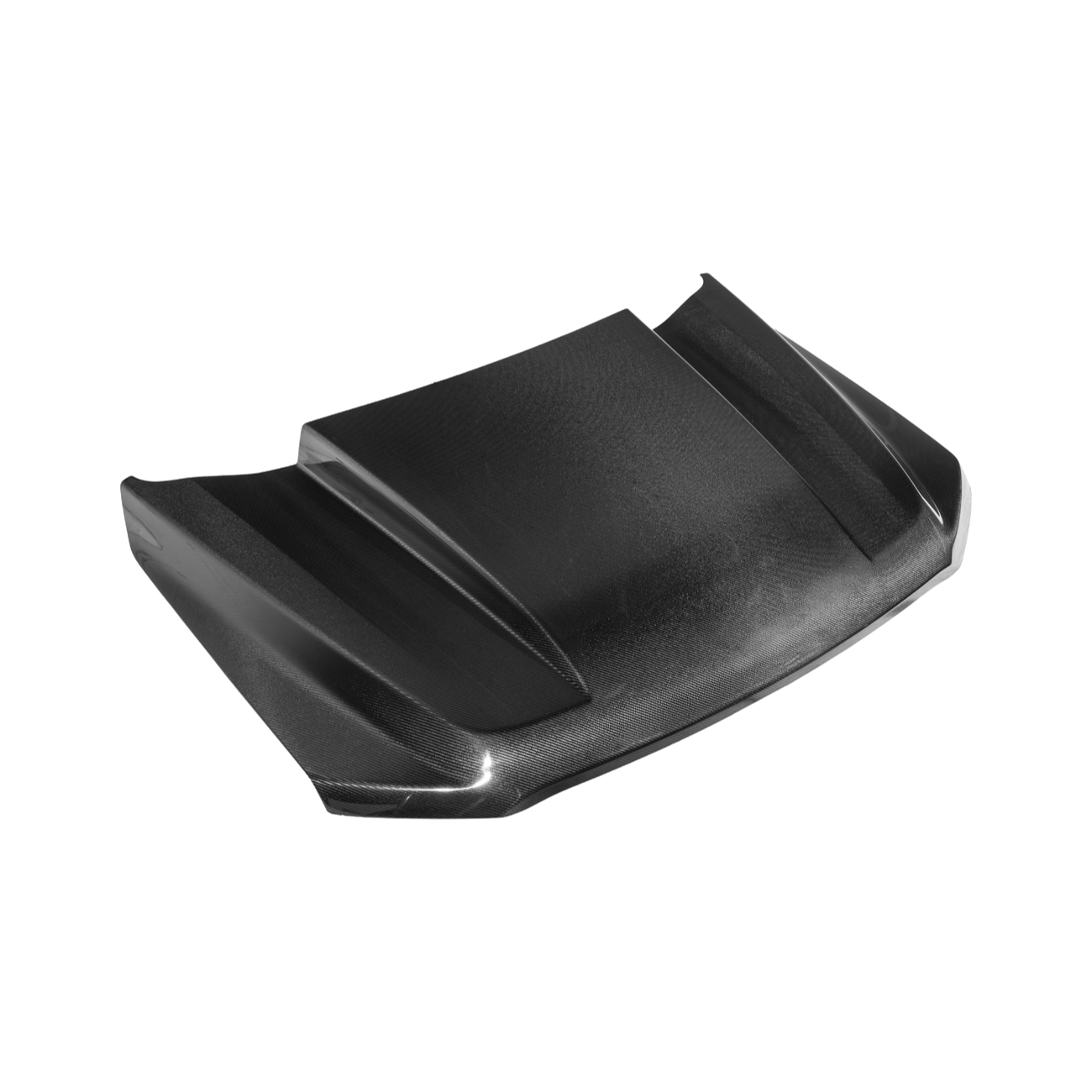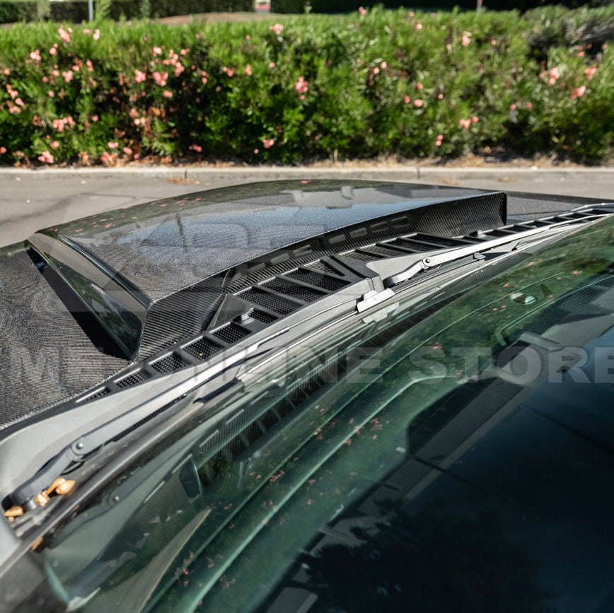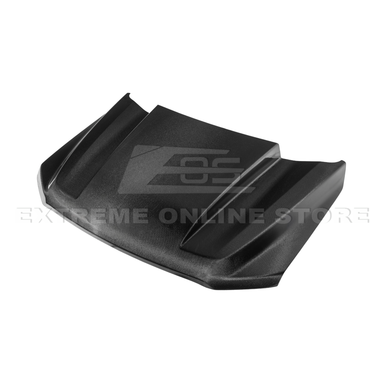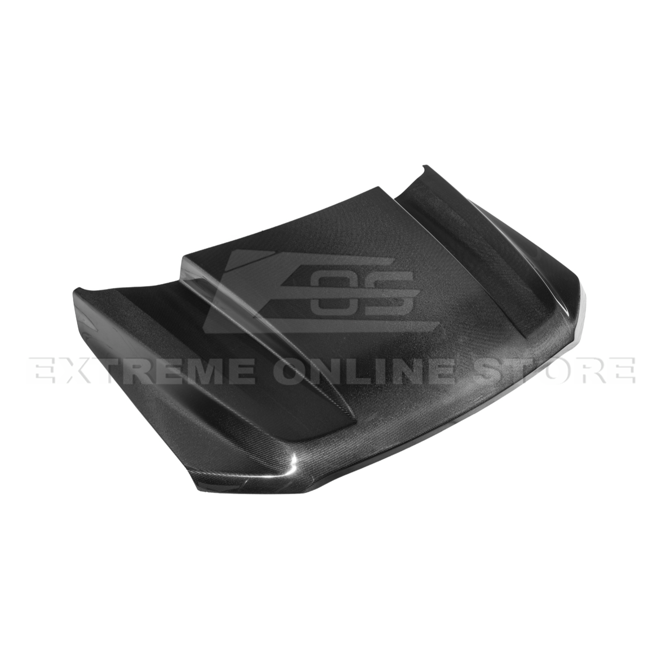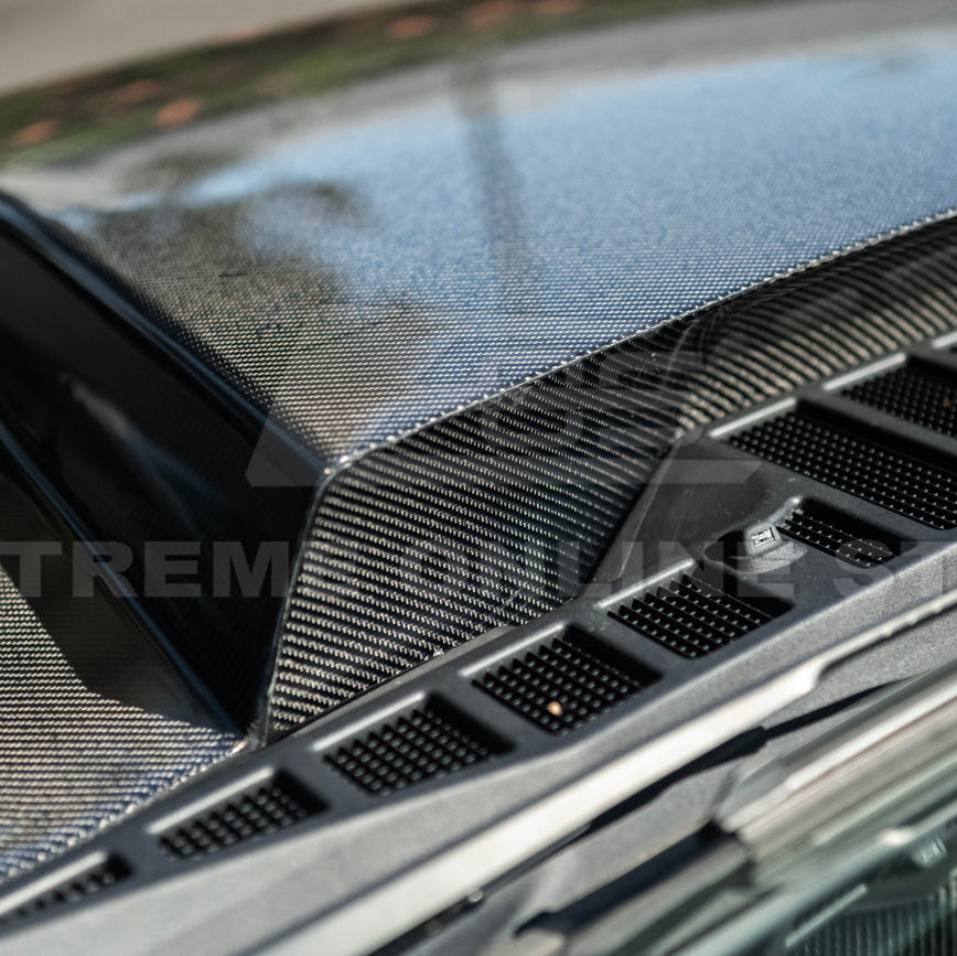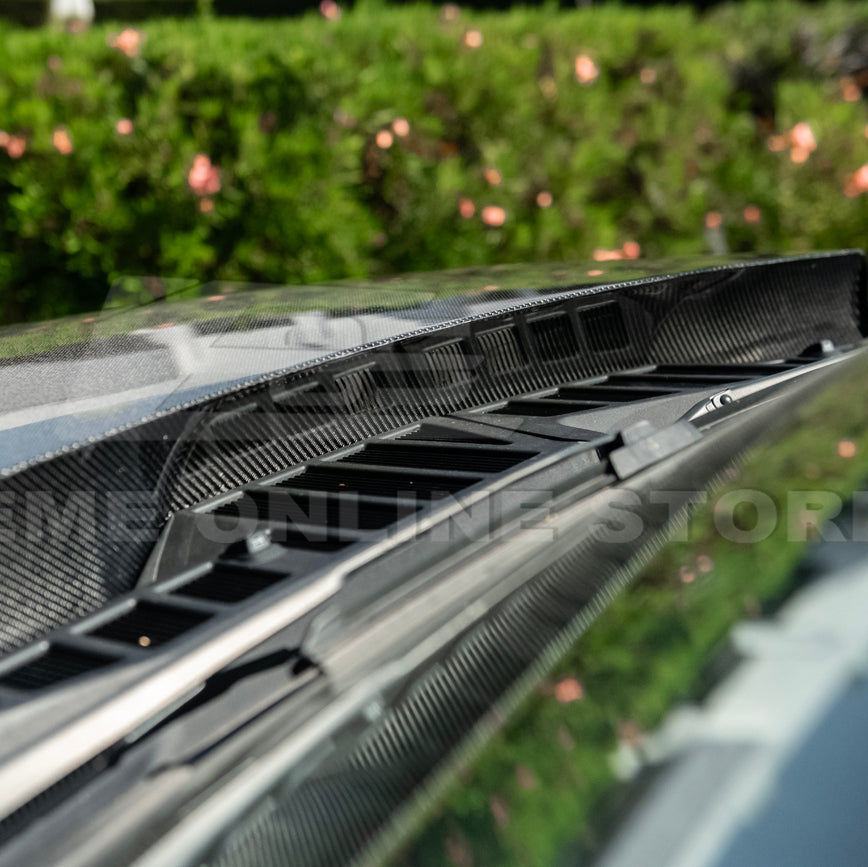 Vehicle Compatibility – Designed exclusively for 2021–Up Ford F-150 models to ensure a seamless integration with factory hood contours and front-end body lines. EOS Performance Package Design – Aggressive Front-End Styling enhances the front hood cowl area with a bold, performance-inspired profile for a commanding road presence. Real Carbon Fiber Construction – Manufactured from genuine carbon fiber to provide superior rigidity, lightweight properties, and long-term durability. 3K Twill Weave Finish – Features a high-quality 3K twill weave carbon fiber pattern for a premium, motorsport-inspired visual finish. Precision OEM Fitment – Molded using OEM geometry to guarantee accurate alignment, smooth panel transitions, and consistent gaps. Direct Bolt-On Installation – Installs directly onto factory mounting points without cutting, drilling, or permanent modifications. Factory Mounting Points – Compatible with OEM hardware for secure, straightforward installation. UV-Resistant Clear Coat – Protects the surface from UV exposure, fading, and environmental wear. Enhanced Front-End Visual Depth – Adds contrast and dimension to the hood and front fascia while maintaining OEM proportions. Ideal for Street & Performance Builds – Suitable for daily-driven trucks, performance builds, or show vehicles looking for a refined carbon fiber upgrade.