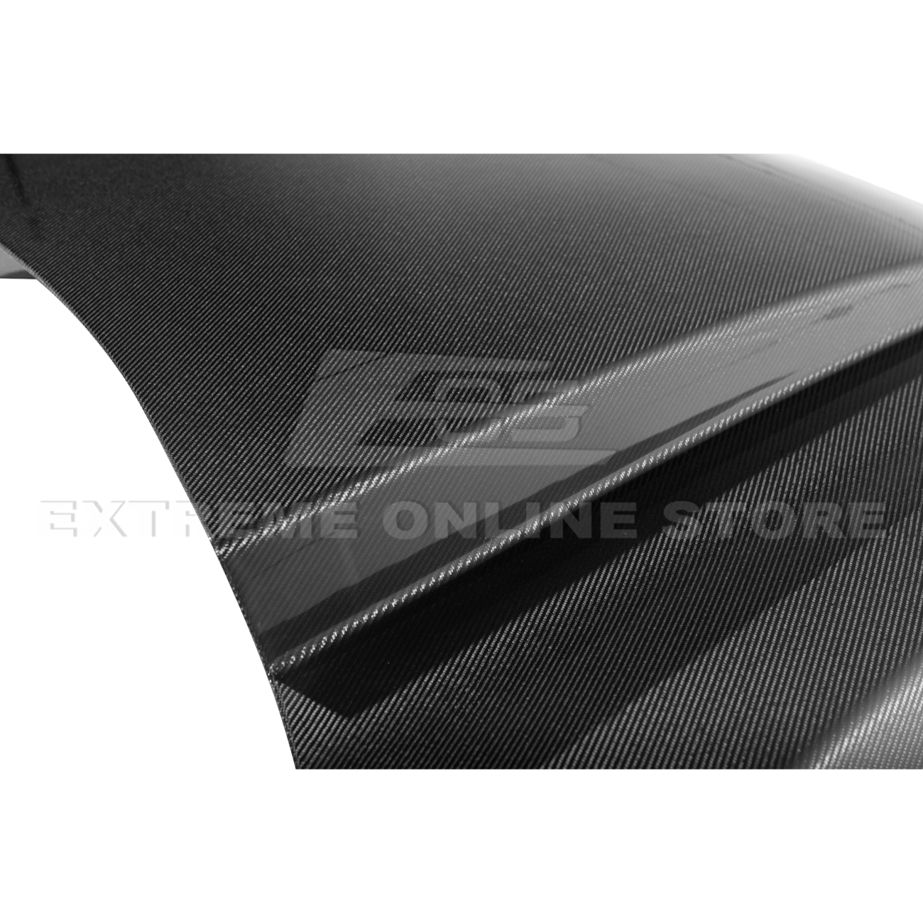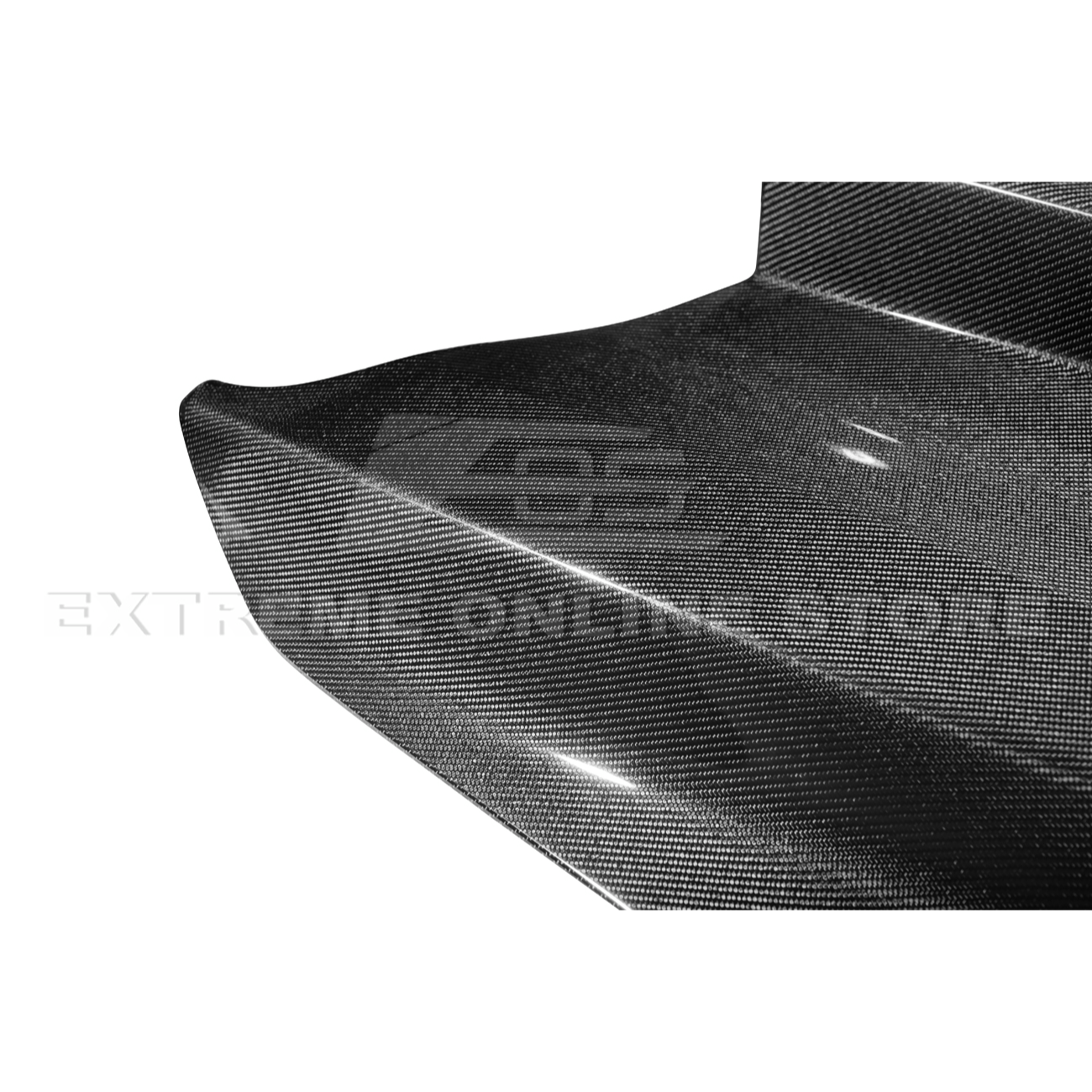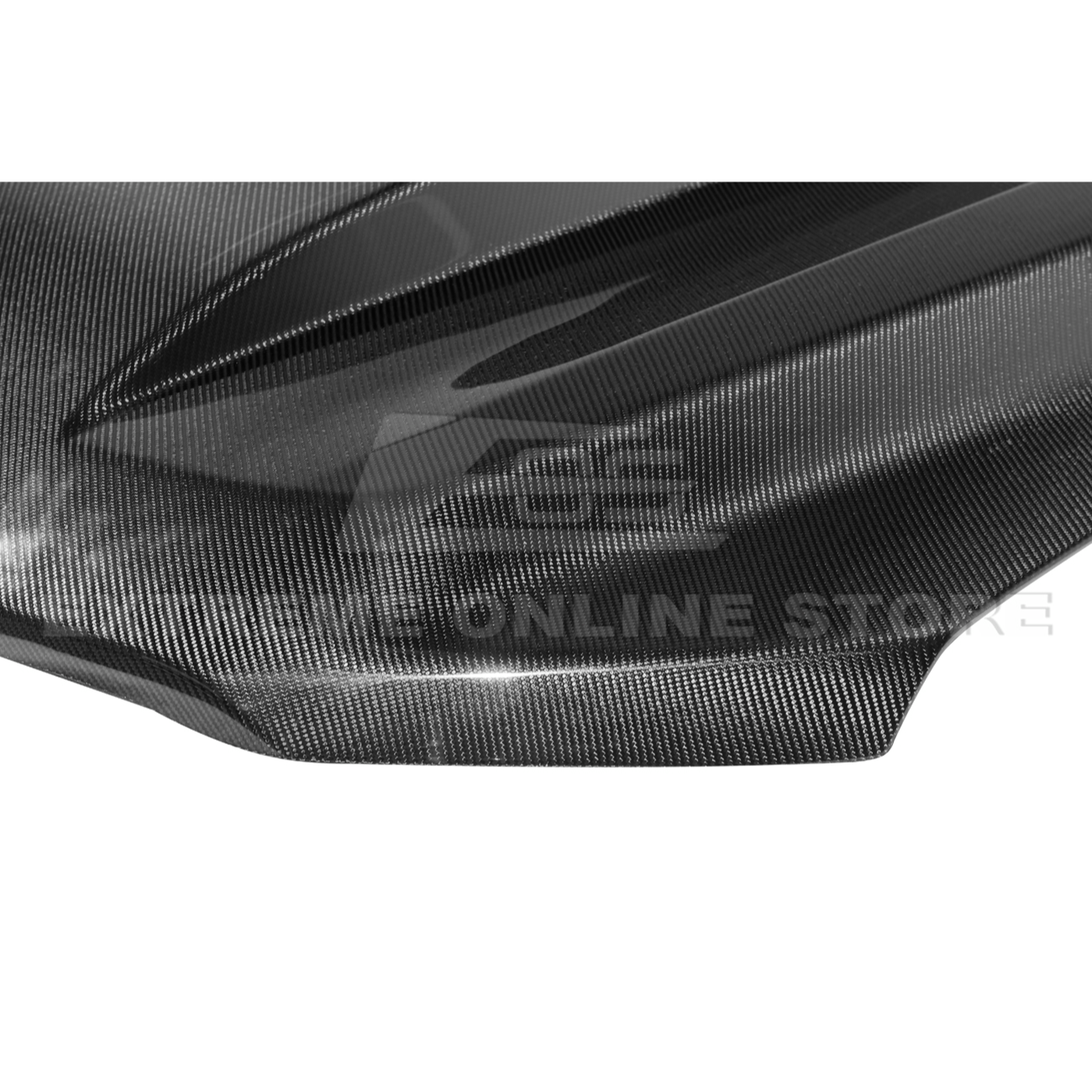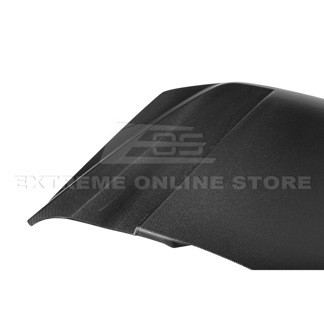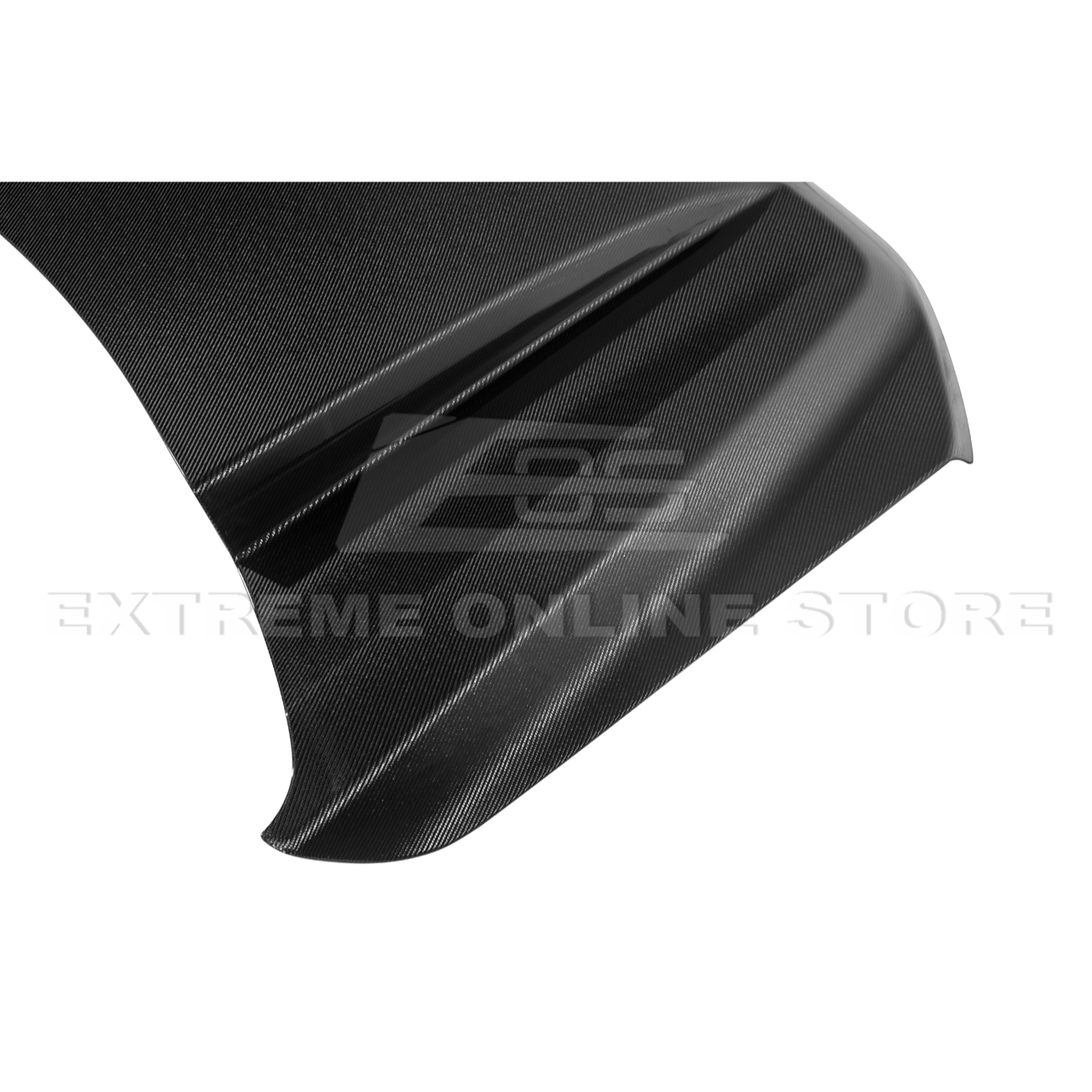 Vehicle Compatibility – Designed exclusively for 2021–Up Ford F-150 models to ensure a seamless integration with factory hood contours and front-end body lines. EOS Performance Package Design – Aggressive Front-End Styling enhances the front hood cowl area with a bold, performance-inspired profile for a commanding road presence. Real Carbon Fiber Construction – Manufactured from genuine carbon fiber to provide superior rigidity, lightweight properties, and long-term durability. 3K Twill Weave Finish – Features a high-quality 3K twill weave carbon fiber pattern for a premium, motorsport-inspired visual finish. Precision OEM Fitment – Molded using OEM geometry to guarantee accurate alignment, smooth panel transitions, and consistent gaps. Direct Bolt-On Installation – Installs directly onto factory mounting points without cutting, drilling, or permanent modifications. Factory Mounting Points – Compatible with OEM hardware for secure, straightforward installation. UV-Resistant Clear Coat – Protects the surface from UV exposure, fading, and environmental wear. Enhanced Front-End Visual Depth – Adds contrast and dimension to the hood and front fascia while maintaining OEM proportions. Ideal for Street & Performance Builds – Suitable for daily-driven trucks, performance builds, or show vehicles looking for a refined carbon fiber upgrade.