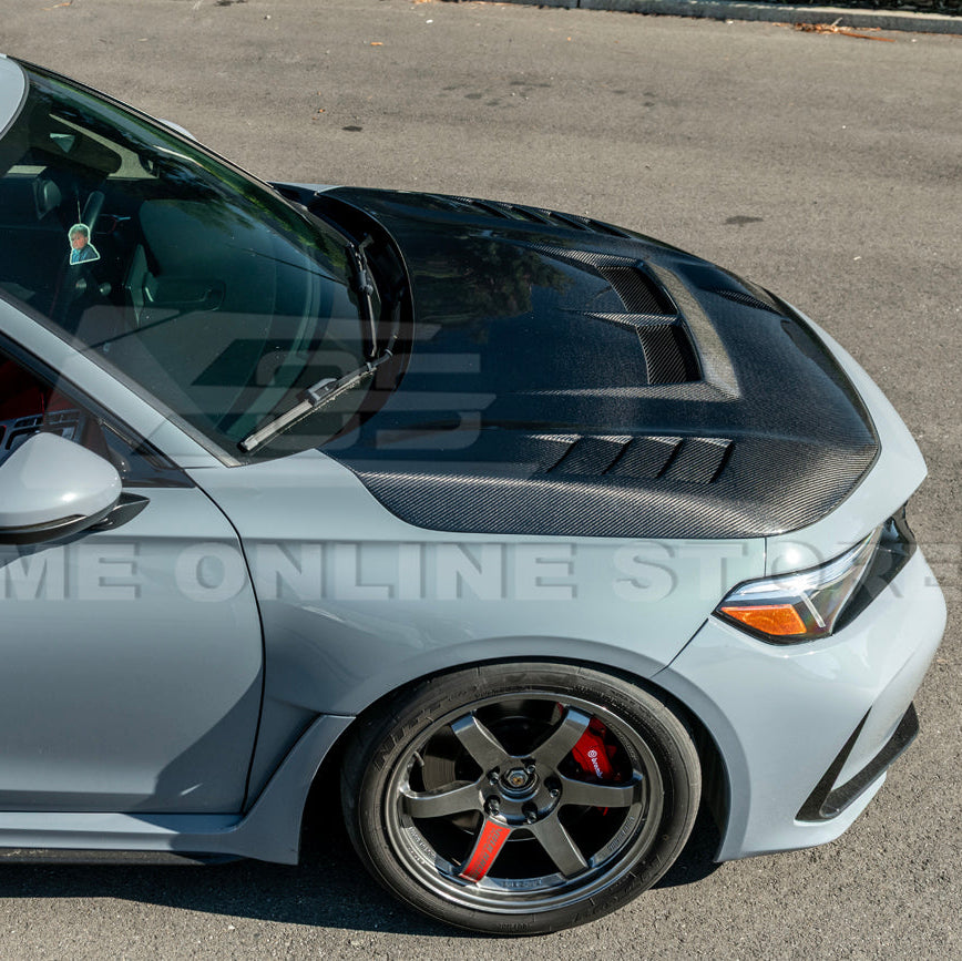 Transform the look and performance of your 2023–Present Honda Civic FL5 Type-R with the JDM Varis Style Carbon Fiber Front Hood Cover. Designed for enthusiasts who appreciate authentic JDM craftsmanship and track-inspired style, this hood combines lightweight performance with aggressive visual appeal. Crafted from premium 3K twill weave real carbon fiber, it offers exceptional strength, durability, and weight savings—helping your FL5 Type-R maintain an edge in both aesthetics and performance.