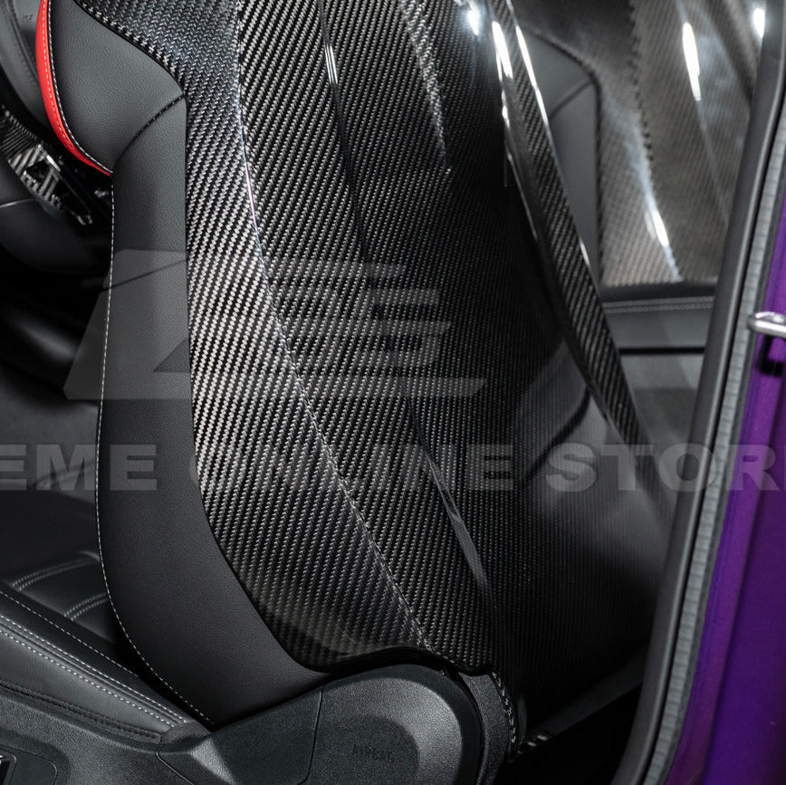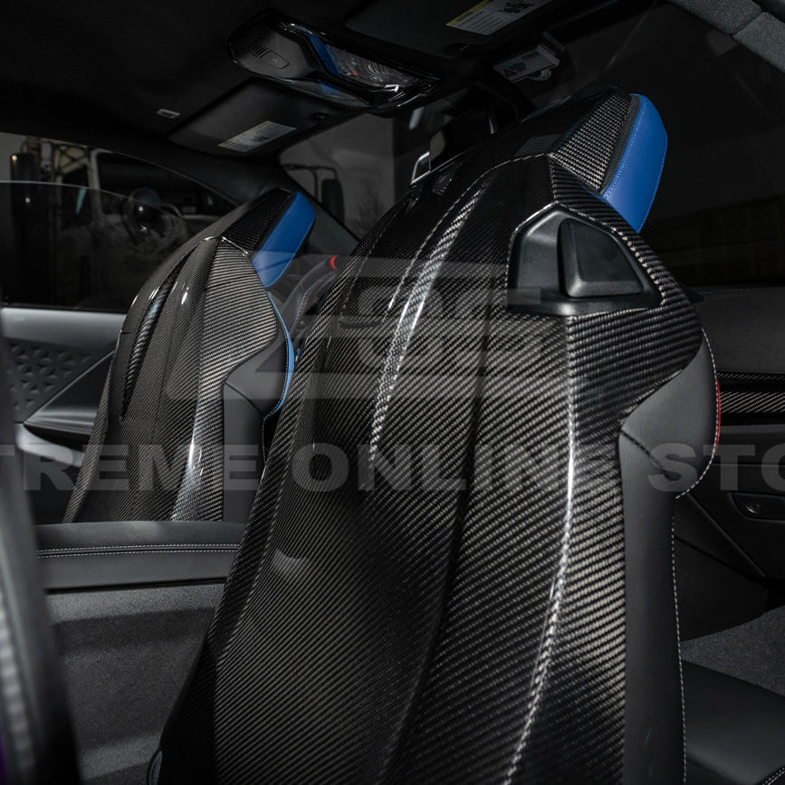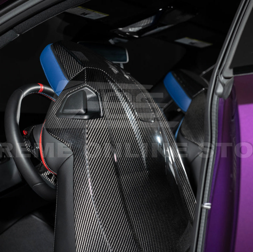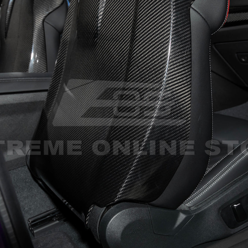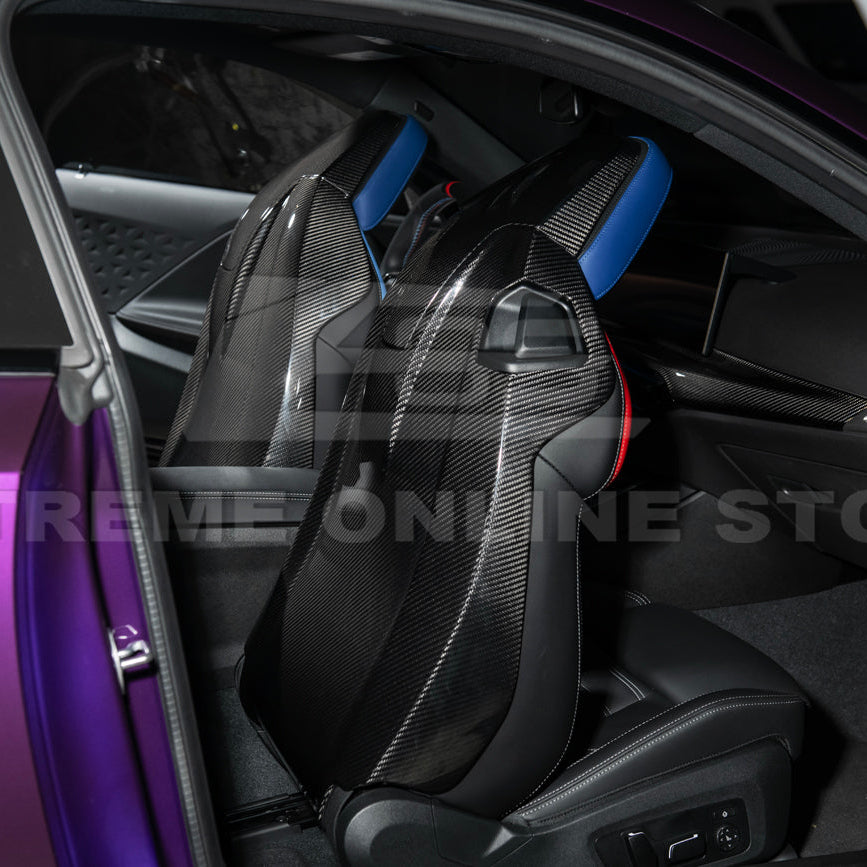 Elevate the cabin of your BMW G87 M2, G80 M3, or G82/G83 M4 with this Factory Style Dry Pre-Preg Carbon Fiber Seatback Cover Set, engineered for perfect OEM-level fitment and a premium motorsport-inspired appearance. Designed as a direct overlay for the factory M Sport seatbacks, these covers enhance the interior with real carbon fiber texture and deep gloss finish—replicating the exotic look found in BMW CSL/CS performance models.
