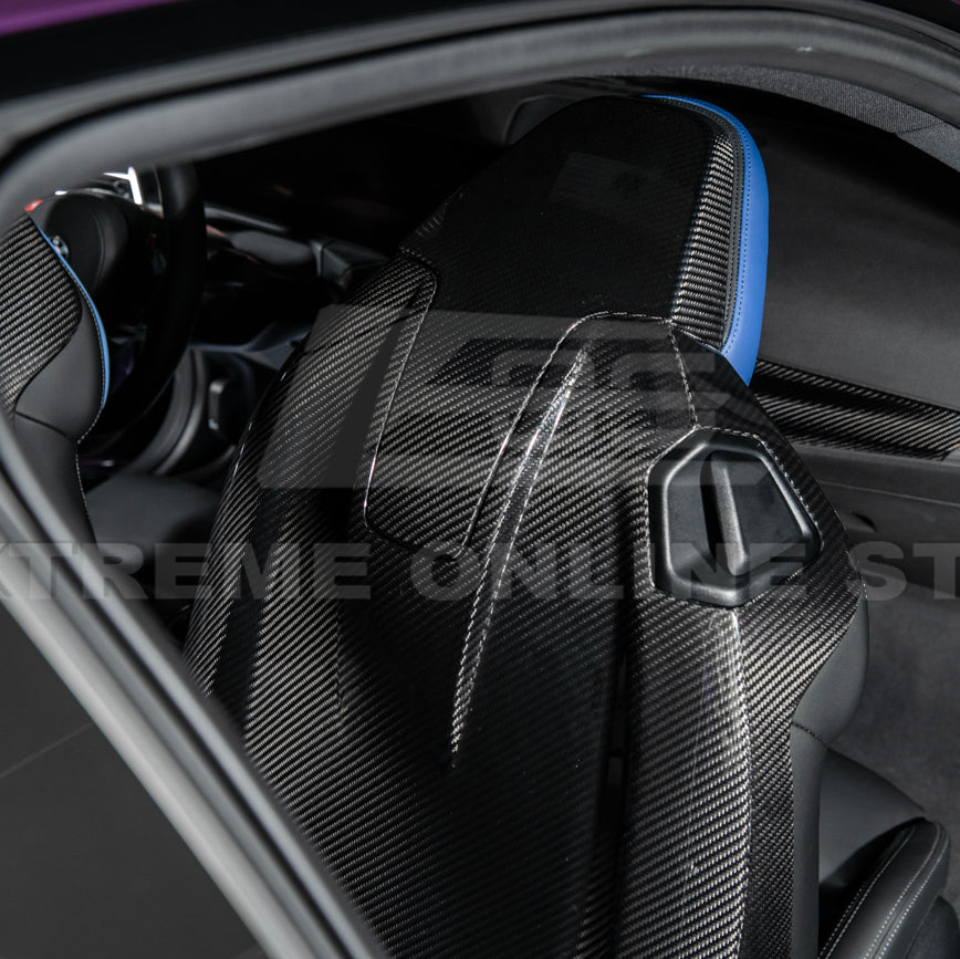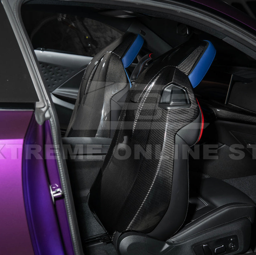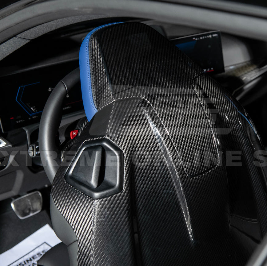 Upgrade the interior of your BMW G87 M2, G80 M3, or G82/G83 M4 with this premium Factory Style Dry Pre-Preg Carbon Fiber Headrest Cover Set, engineered for perfect OEM-style fitment and an exotic high-performance aesthetic. Designed as a direct overlay for the factory M Sport seat headrests, these carbon fiber covers deliver a dramatic visual enhancement inspired by BMW’s CSL and CS interior packages.