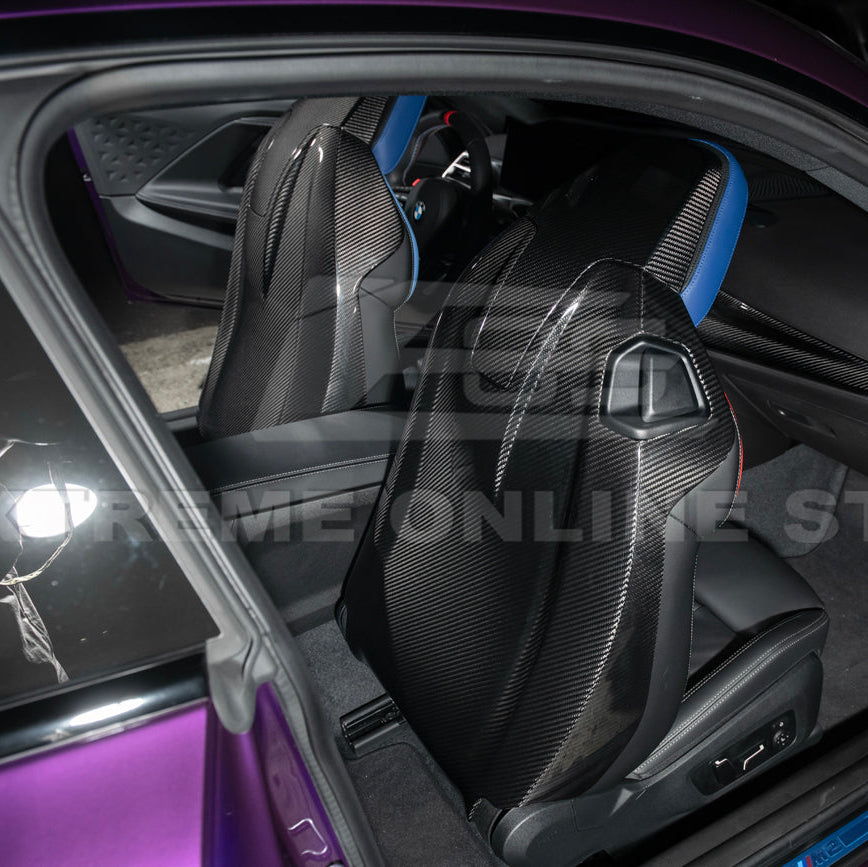 Whether you drive on the street, attend shows, or simply enjoy the refined look of premium carbon fiber, these headrest overlays elevate your interior without altering any factory components. Compatible with all 2021–present BMW G87 M2, G80 M3, and G82/G83 M4 models, this upgrade enhances both visual appeal and perceived cabin quality.