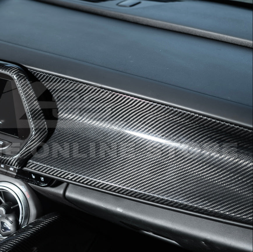 Enhance the interior of your 2016-2024 Chevrolet Camaro with this premium Carbon Fiber Dashboard Instrument Panel Cover Replacement. Designed specifically for all Camaro models from 2016 to 2024, this GM factory-style replacement panel is crafted from high-quality dry pre-preg carbon fiber, offering a lightweight, durable, and luxurious upgrade to your vehicle’s dashboard. The panel seamlessly integrates with the existing dashboard layout, ensuring an OEM-like fit and finish while providing a modern, sporty aesthetic.