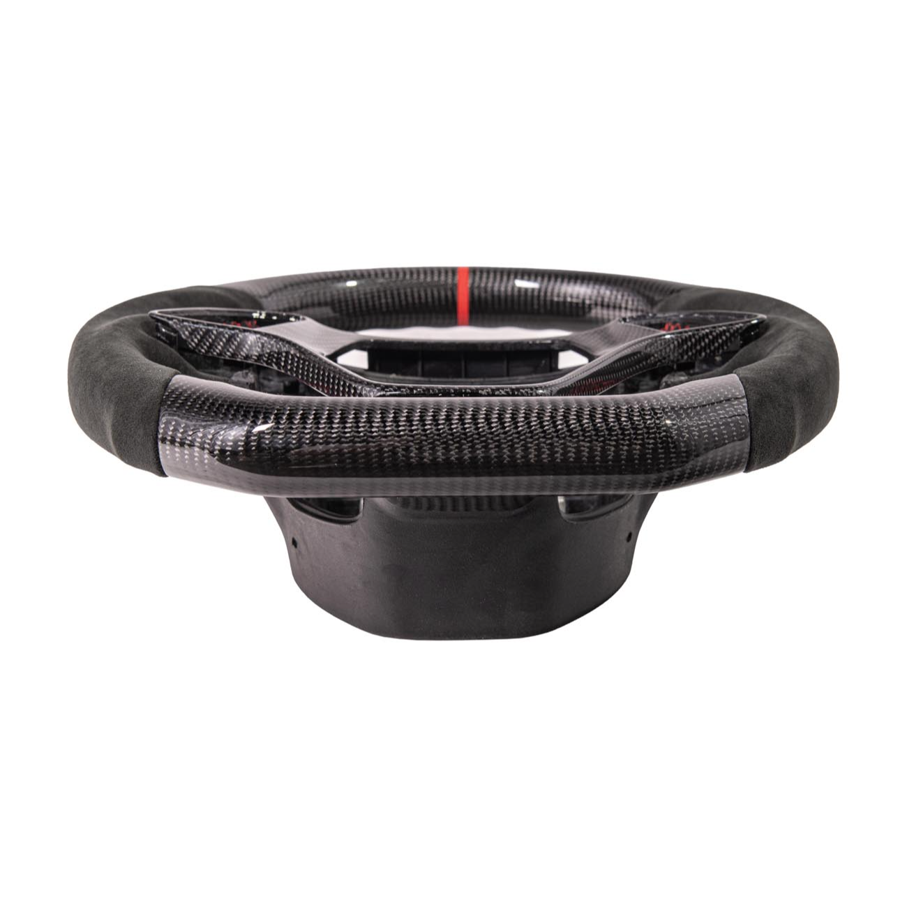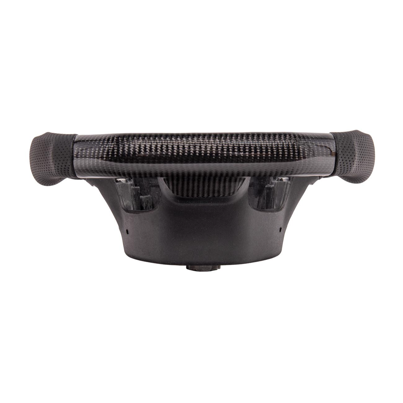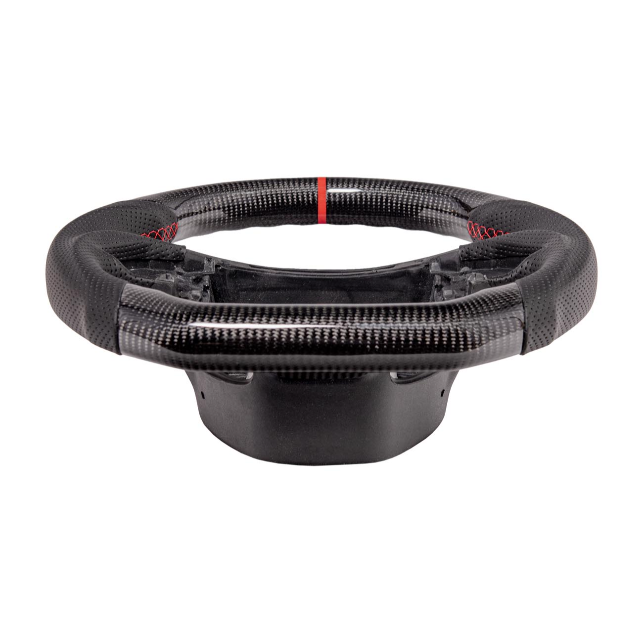 Carbon fiber build reduces weight compared to traditional factory steering wheels, improving steering responsiveness and feel.