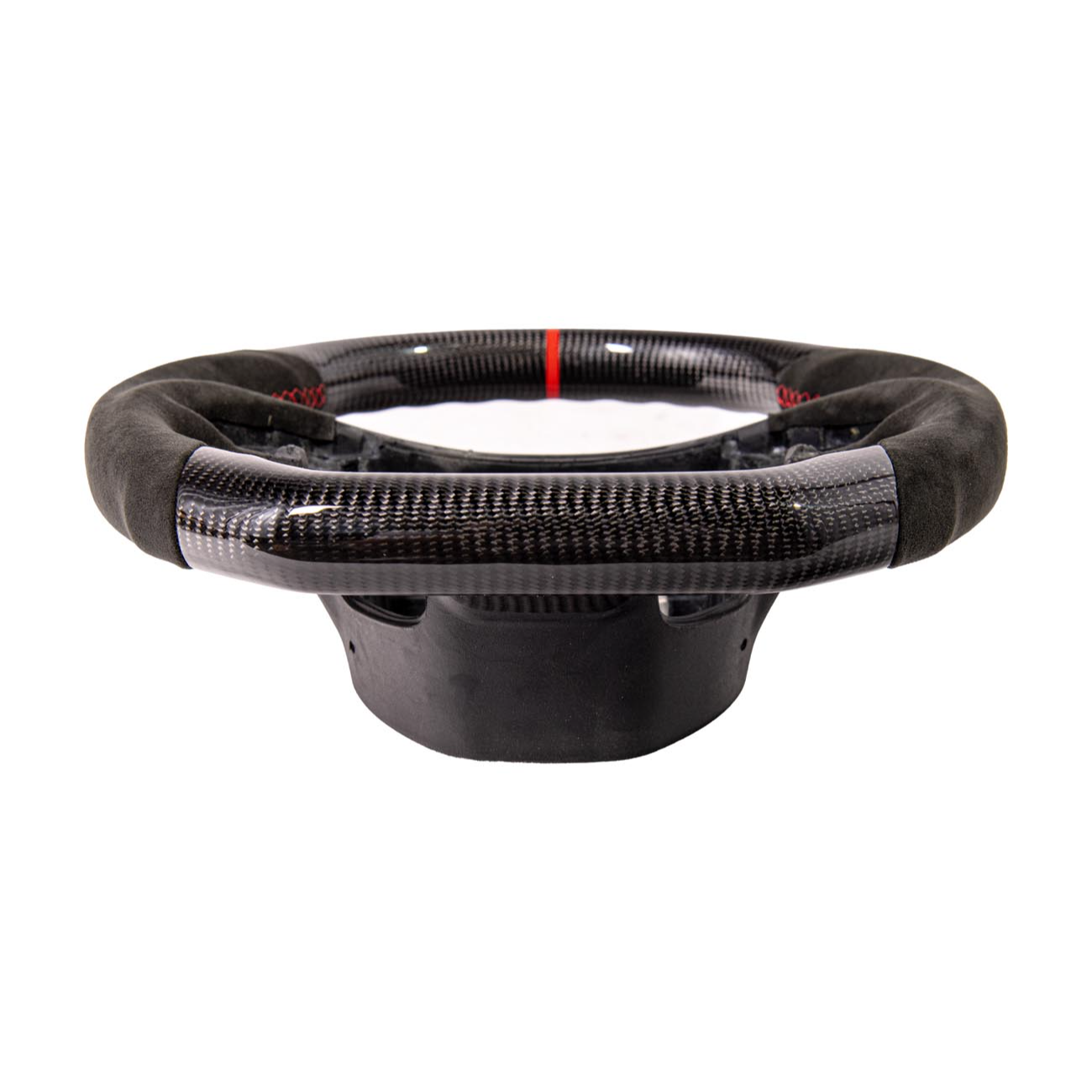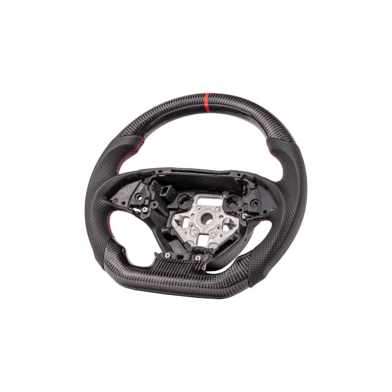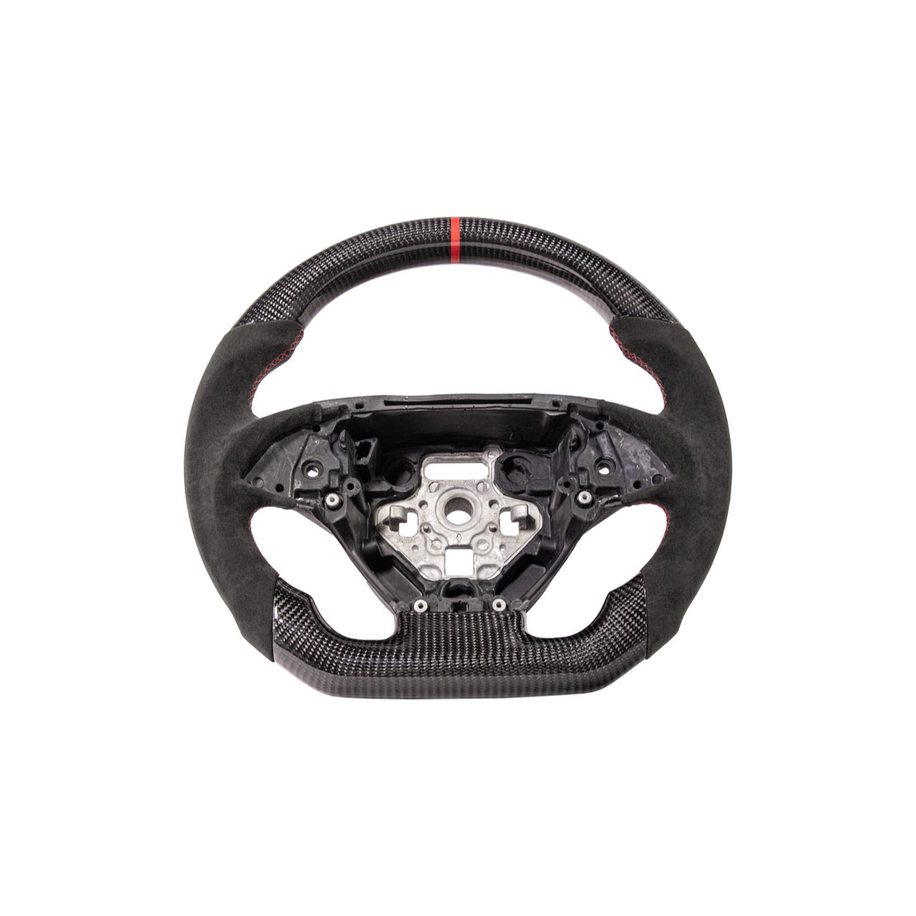 Constructed with a reinforced internal core and premium carbon fiber outer shell, this steering wheel delivers exceptional rigidity while remaining lightweight. Choose traditional carbon fiber weave for a clean, high-gloss performance look or forged carbon for a more modern, high-end motorsport appearance with a unique marbled texture. Optional Alcantara side grips improve comfort and tactile response, while carbon fiber button covers elevate the factory control areas for a cohesive full-carbon interior theme.