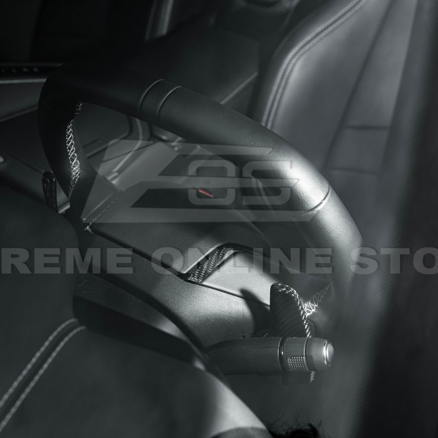 Engineered as a direct replacement overlay for the factory paddles, they mount to the factory locations and use included double-sided tape—no cutting, no wiring, no drilling. The UV-protected clear maintains a deep gloss and resists fading, ideal for hot-sun markets across the US, Canada, and international regions. If you’re searching for an OEM-plus interior upgrade that’s lightweight, durable, and instantly noticeable, these factory-style dry carbon paddles are the perfect match for any C8 build.
