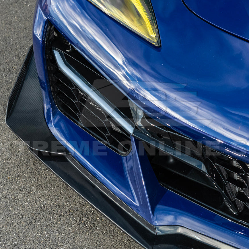 Upgrade the front-end styling and visibility of your 2023–Present Chevrolet Corvette C8 Z06, E-Ray, and ZR1 with this GM Factory Style Carbon Fiber Front Grille Insert—an OEM-inspired enhancement engineered to deliver premium fitment, aerodynamic refinement, and modern LED functionality. Designed for all 2020–Present Corvette C8 widebody models, this grille insert replaces the original grille trim with a lightweight carbon fiber assembly that integrates seamlessly into the factory bumper.