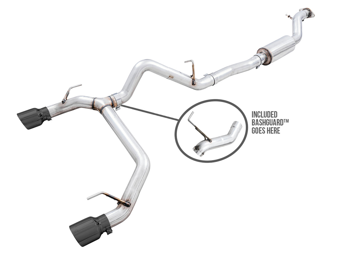 AWE 0FG Catback Exhaust for Ford Bronco with BashGuard™ - Dual 4.5" Diamond Black Tips