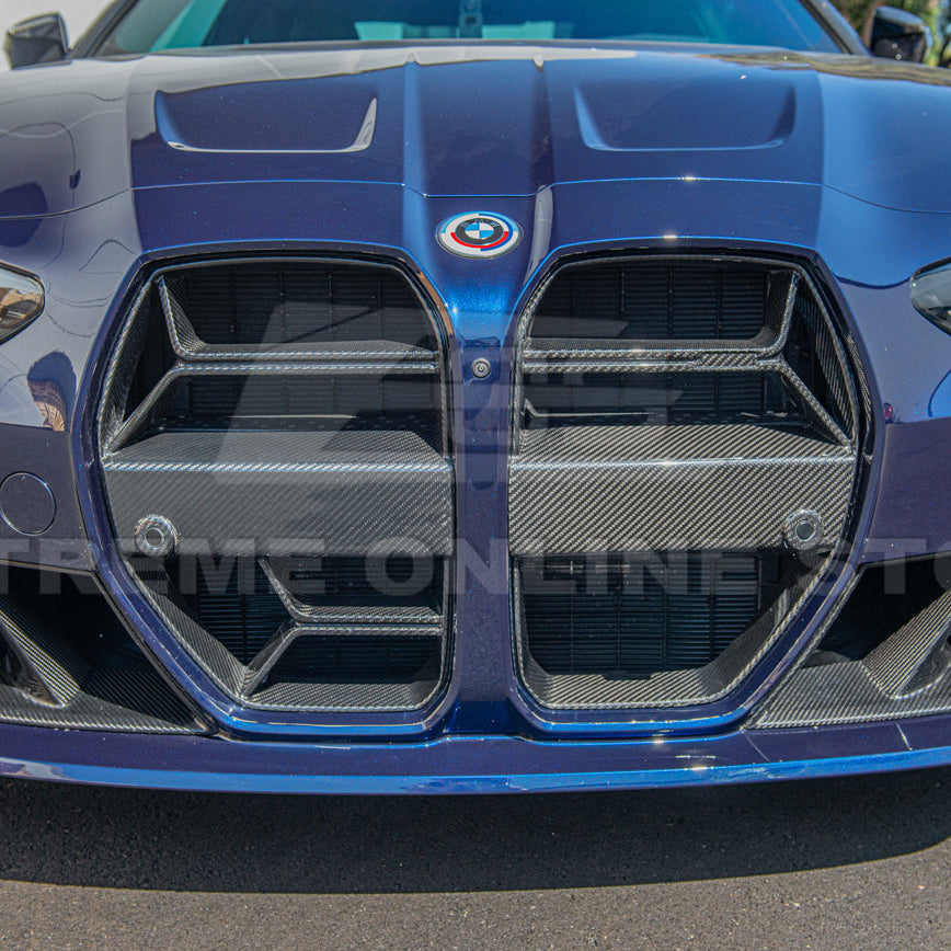 Upgrade the front-end appearance of your BMW with this CSL Style Carbon Fiber Front Bumper Kidney Grille Cover, designed to fit 2021–Present BMW G80 M3 and G82/G83 M4 models. Inspired by BMW’s lightweight CSL performance variants, this grille cover delivers a sharper, more aggressive motorsport look while maintaining factory design language and OEM-level fitment.