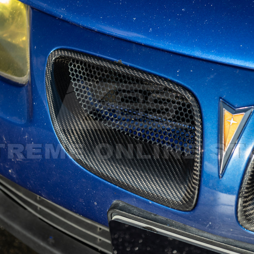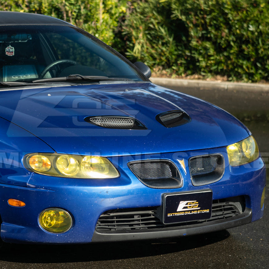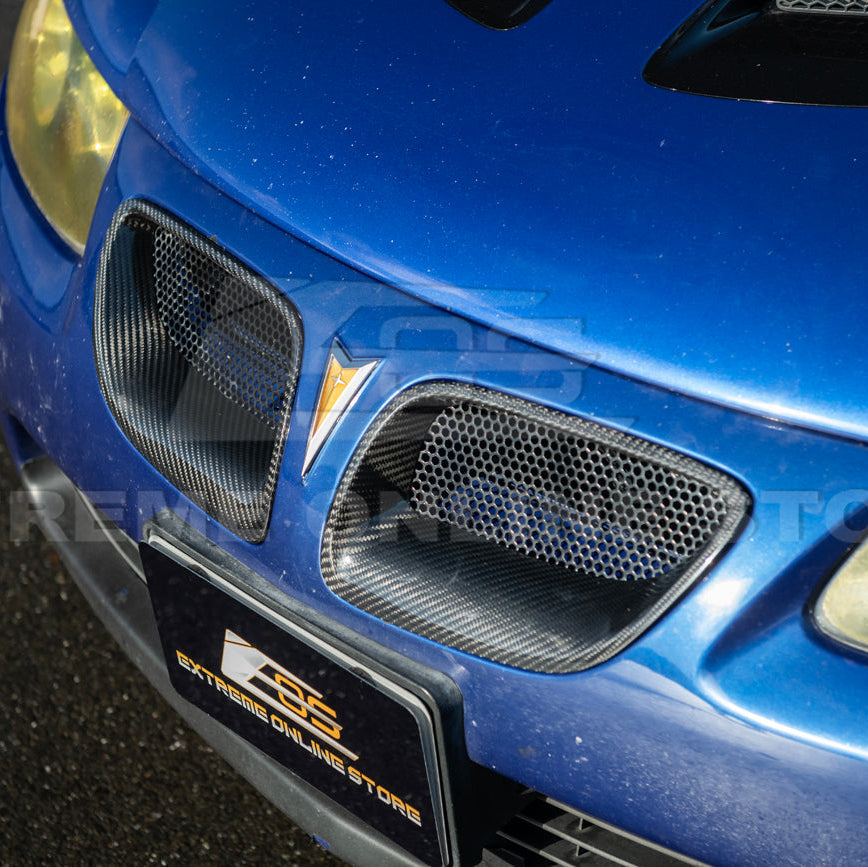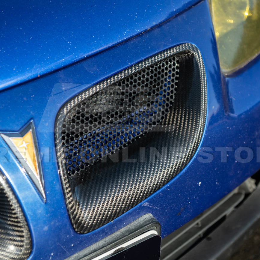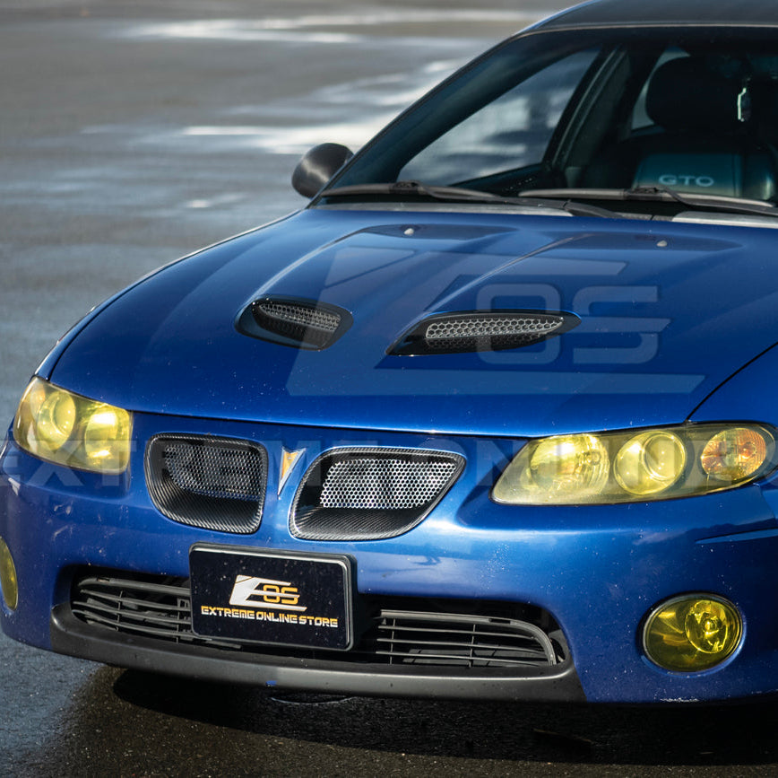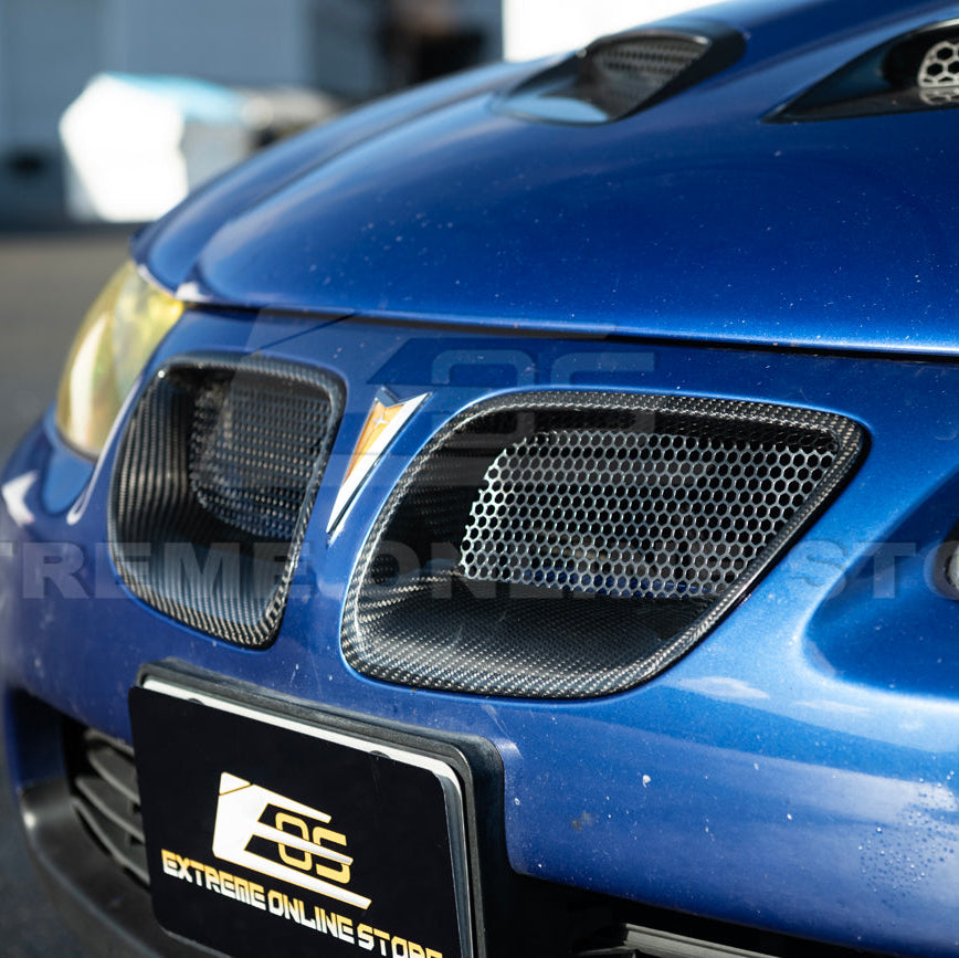 Elevate the look and performance of your 2004-2006 Pontiac GTO with the EOS Carbon Fiber Front Mesh Grille Insert. Precision-engineered for a perfect factory fit, this grille insert is crafted from high-quality dry pre-preg 3K carbon fiber, delivering maximum strength while staying ultra-lightweight. The honeycomb high-flow design enhances airflow for improved cooling, giving your GTO both style and function. This package includes a complete pair of left and right grille inserts, offering a seamless front-end upgrade that instantly modernizes your vehicle’s appearance. Hardware is not included, but OEM mounting points can be reused for easy installation.
