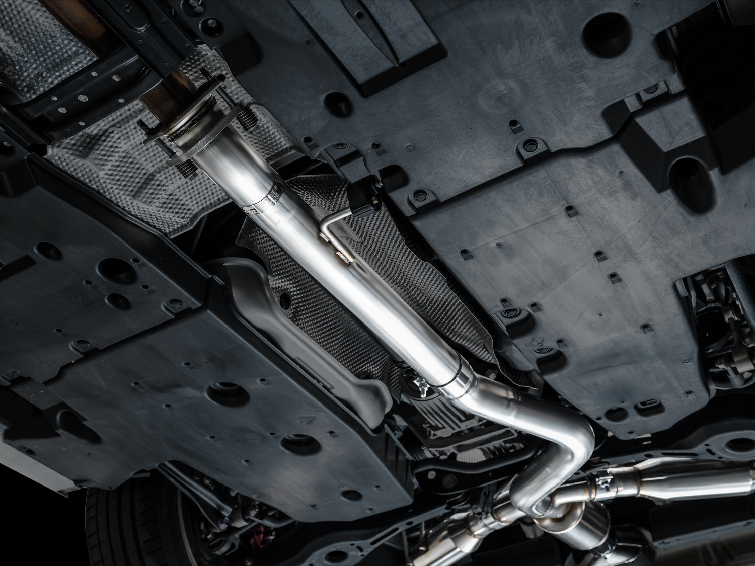 For those who like their volume like their speed (and want to feel the raw nature of the GRC’s potent 3-cylinder at all speeds) the Track Edition features a non-resonated mid-section (i.e. no 180 Technology®). It’s even louder (in & out) than the Touring Edition, while shaving weight and cost. This version is known to get rowdy in mid-range acceleration/deceleration and cruising, and may be too much for some. For this reason, the Track Edition cannot be returned for sound reasons--you've been warned! The Track Edition boasts a 3” T304L stainless steel downpipe-back configuration that brings out an incredibly rowdy and powerful soundtrack that is nothing short of attention-grabbing. AWE designed three, perfectly fitting (and larger) tips for the GRC: one bespoke 4.5" x 8" oval (double-walled, slash-cut tip and stamped with the AWE logo) in the center, and two 5” double-walled, slash-cut tips left and right. No forced block-off plates or quad setups here - just pure GR look, as intended. When it comes to valves, the rumors are true - they don't matter once you remove the backpressure issues of the stock configuration (and you can't open the valve yourself anyway). So we decided to delete them, save weight, drop price, and make the best sounding exhaust available for the GRC. And in case you're wondering, there's a tailored mount right on the exhaust so you have a solid location to bolt up your factory valve after removing the unnecessary organ. All this supported by AWE’s Perfect Fitment Guarantee, No CEL Guarantee, and Lifetime Warranty.