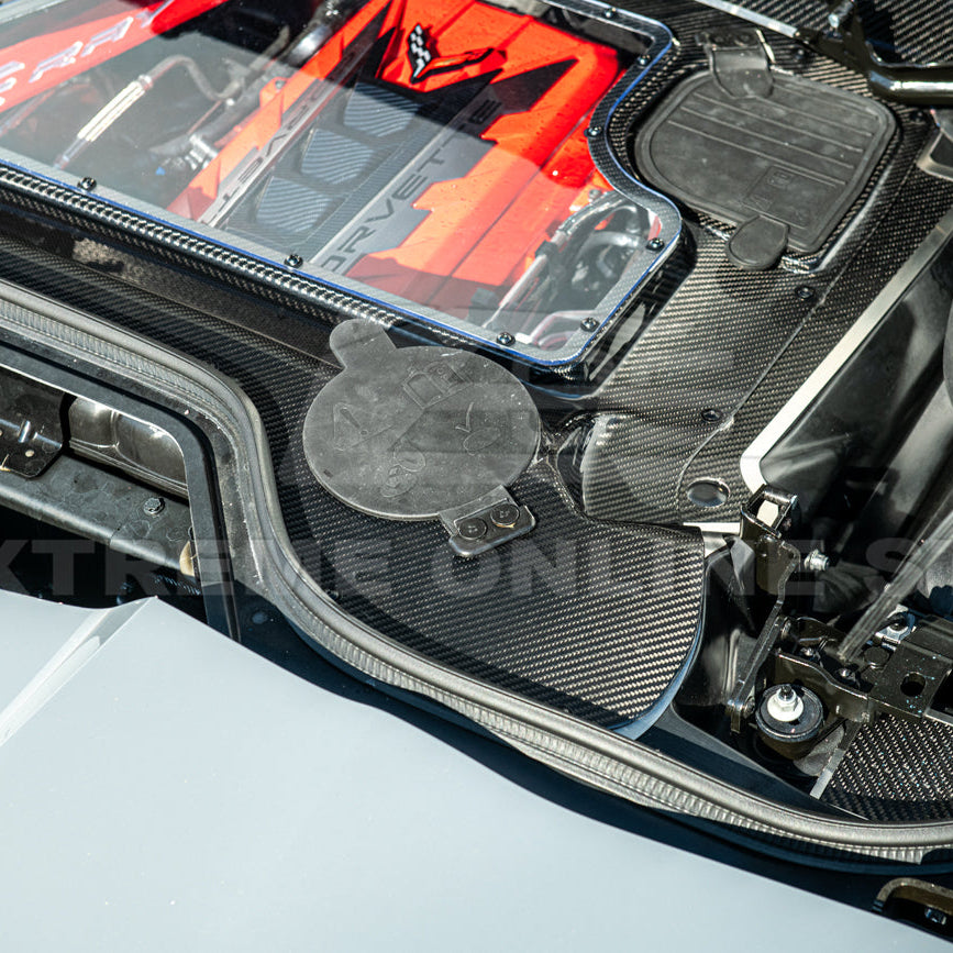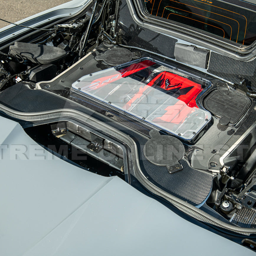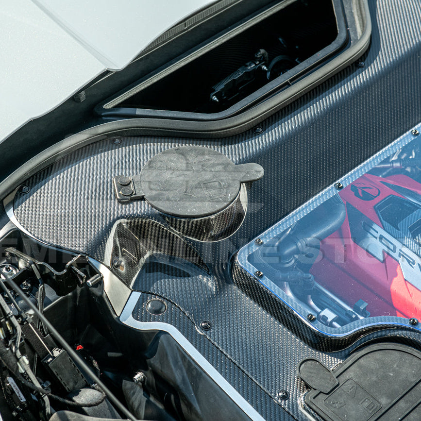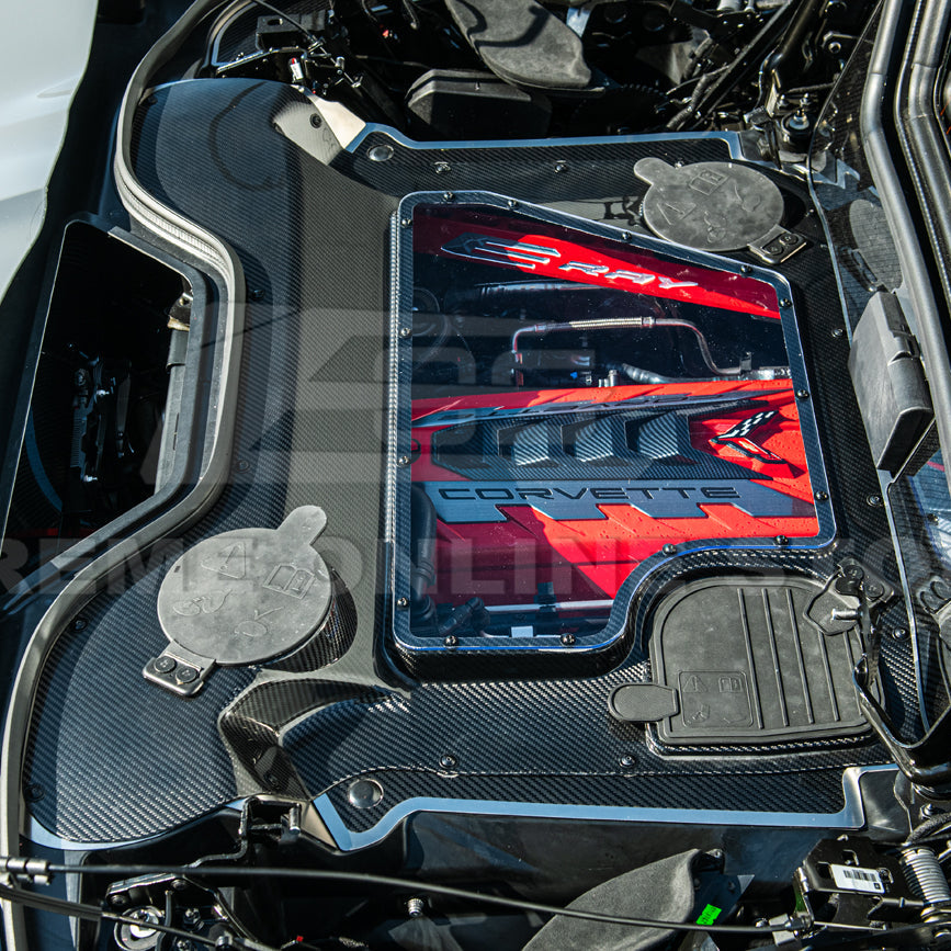 Whether you're showcasing your Corvette at a local car event, detailing the engine bay for photography, or adding refined personalization to your build, this carbon fiber HTC engine cover provides an unmistakable visual upgrade that brings supercar-level attention to the rear compartment of your C8 Convertible.